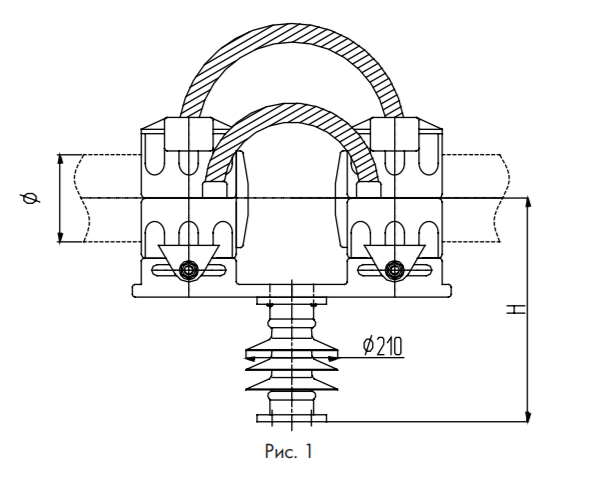 | Марка полимерной шинной опоры для жесткой ошиновки | Диаметр трубы жесткой ошиновки | Диаметр, D | Строительная высота, H, мм | Рисунок | Размеры нижнего установочного фланца | Вес, кг, не более |
