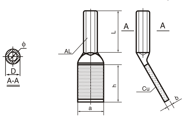 Зажим применяется для присоединения к медным выводам аппаратов или выводам, плакированным медью. Лапка зажима полностью медная. Соединение с алюминиевой частью монолитное. Опрессовывается