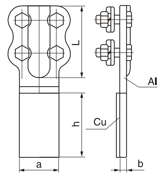 | Марка арматуры | Сечение провода, мм² | Кол-во болтов, шт | Размеры, мм | Вес, кг | |||