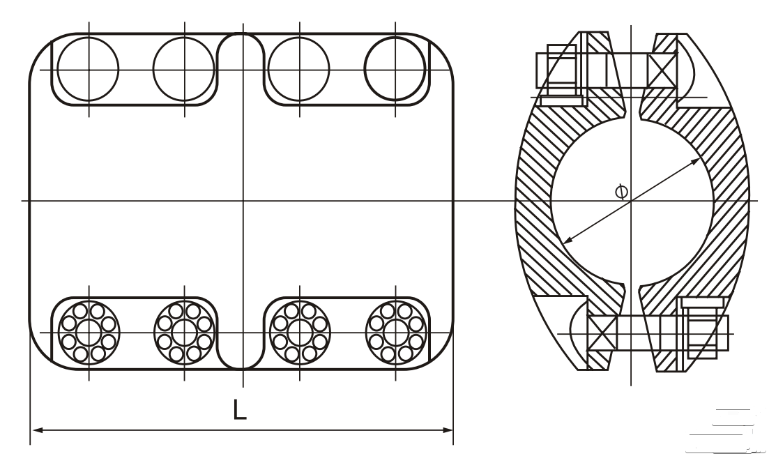 двух труб одинакового диаметра шины жесткой ошиновки. Соединение наружное.