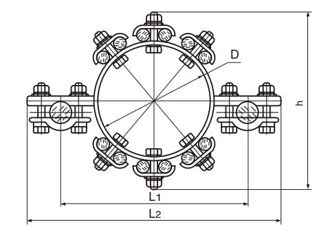 Внутрифазные подстанционные распорки предназначены для удержания алюминиевых проводов на окружности в количестве от 8 до 24 в зависимости от передачи необходимой мощности. На рисунке условно показана распорка на 12 проводов и 2 несущих провода.