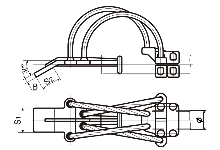 Зажим предназначен для соединения алюминиевой трубы жесткой ошиновки с выводами аппаратов, расположенными под углом 30 градусов. Зажим имеет проводную гибкую связь и подвижное крепление лапки к шине. Необходимые отверстия в алюминиевой лапке прокалываются при монтаже или непосредственно