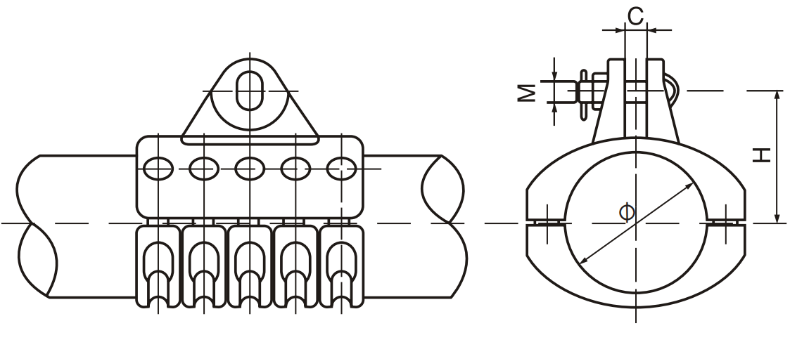 Зажим предназначен для подвески алюминиевой трубы