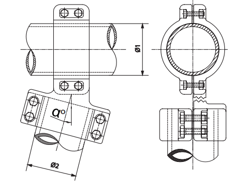 Зажим предназначен для соединения двух круглых шин жесткой ошиновки под углом. Используется совместно с ЖОС-56 для создания А-образной системы соединения шин жесткой ошиновки.