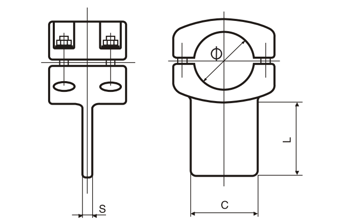 Необходимые отверстия для монтажа аппаратных зажимов можно можно проколоть специальным инструментом в условиях подстанции или заказать на АИЗе при поставке. Возможна поставка зажима ЖОС-7 с
