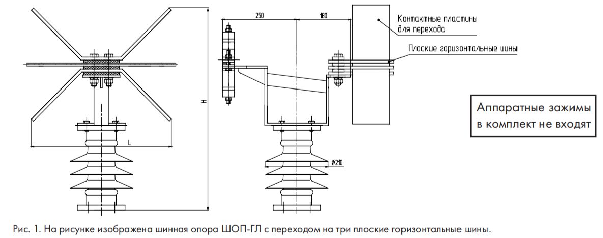 | Марка опоры | Кол-во проводов | Плоские шины | H, мм | Рис. | Фланец | Вес, кг |