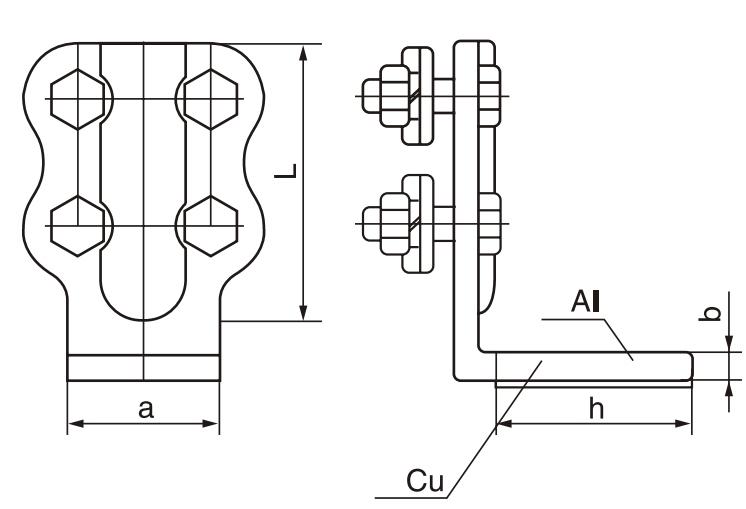 | Марка арматуры | Сечение провода, мм² | Кол-во болтов, шт | Размеры, мм | Вес, кг | |||