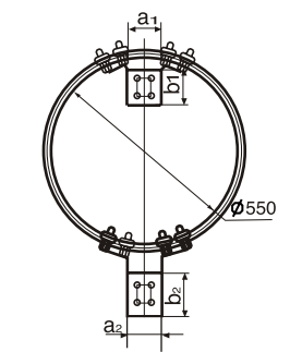 Кольцо терминала предназначено для комплектования терминалов ответвления от магистральной круглой шины на другую алюминиевую трубу жесткой ошиновки. Кольцо терминала выполняет функцию виброгашения и уменьшения коронирования, так как внутри кольца напряженность поля отсутствует. Кольцо сопрягается с различными типами зажимов жесткой ошиновки типа ЖОС.
