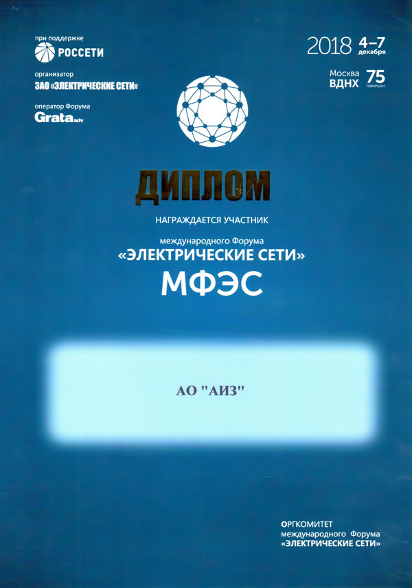 В Москве в период с 4 по 7 декабря 2018 г. на территории ВДНХ в Международном выставочном центре МосЭкспо (павильон №75) прошла Международная специализированная выставка «Электрические сети России-2018», в которой приняли активное участие специалисты АО «АИЗ».